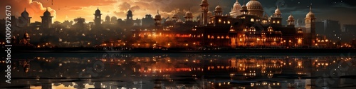 © Genius Visuals, Fototapeta premium Beautiful Arabian Style Palace View of Hallway Created with Generative AI Technology