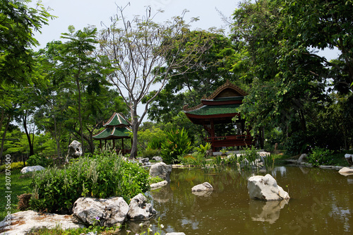 Obraz premium Beautiful arbor in the green near the pond. The ancient city - Muang Boran