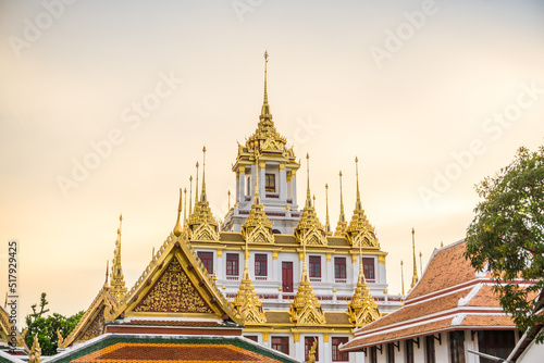Fototapeta premium Beautiful architect of buddhist templae sunset sky with cloud