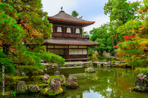 Obraz premium beautiful architecture at Silver Pavillion Ginkaku temple, autumn in Kyoto,...