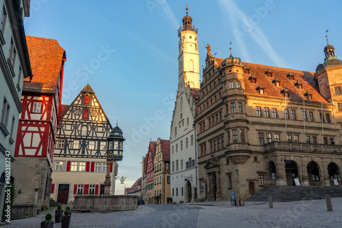 Obraz premium beautiful architecture of romantic Rothenburg ob der Tauber with timbered...