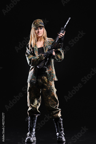 Fototapeta premium Beautiful army girl with gun