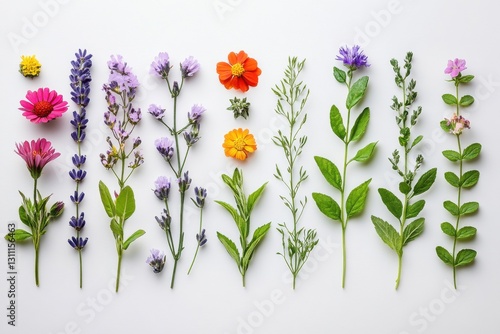 Naklejka premium Beautiful Arrangement of Fresh Wildflowers and Herbs on a Light Background