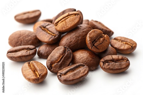 Fototapeta premium Beautiful arrangement of freshly roasted coffee beans against a clean white backdrop.