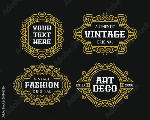 Obraz premium Beautiful Art Deco Set Vintage Ornament Frames Exclusive Line Art Minimalist Badges Luxury Label Design Elements