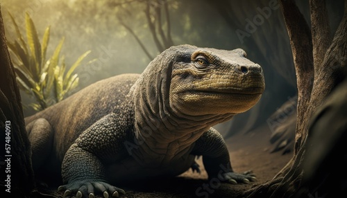Obraz premium Beautiful Artistic Designer Cinematic Portrait of a Komodo Dragon Animal in its Natural Habitat: Celebrating Cute Creatures, Wildlife, Biology, Nature, and Biodiversity (generative AI