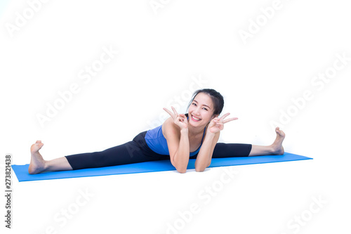 Fototapeta premium Beautiful Asia girl practicing yoga on isolated white background : Concept practicing