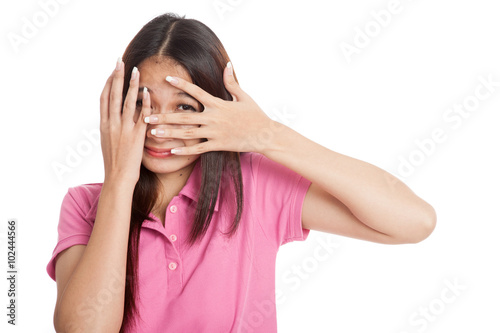 Fototapeta premium Beautiful Asian girl peeking through fingers