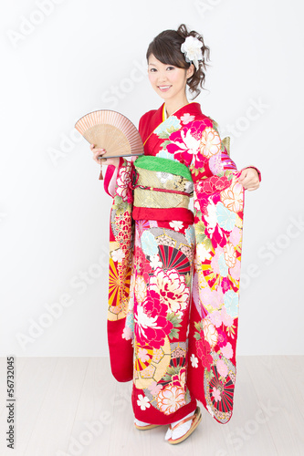 © one, Naklejka premium Beautiful asian kimono woman on white background