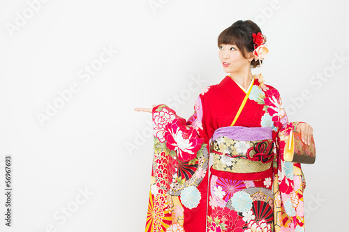 © one, Naklejka premium Beautiful asian kimono woman on white background