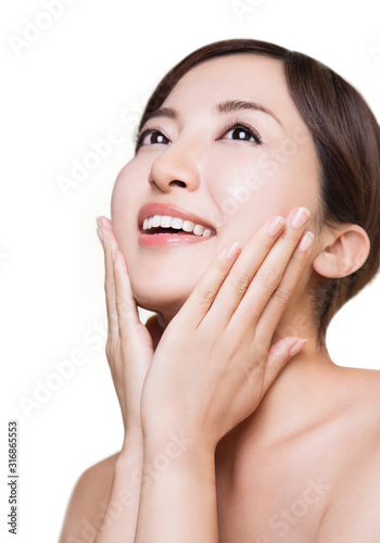 © MoustacheGirl, Obraz premium Beautiful Asian woman isolated on white background. Japanese skincare image.