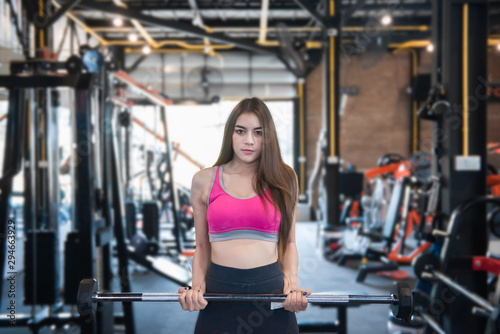 Fototapeta premium Beautiful asian woman play fitness in the gym,Thailand girl has a slim...