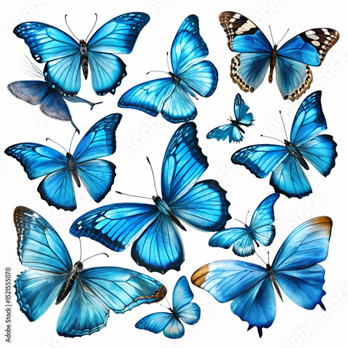 Obraz premium Beautiful assortment of vibrant blue butterflies showcasing intricate...
