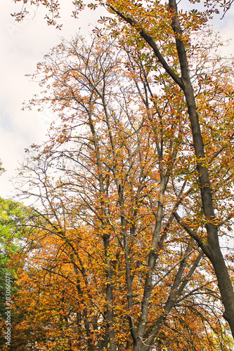 Fototapeta premium Beautiful autumn. A park. Tops of trees.