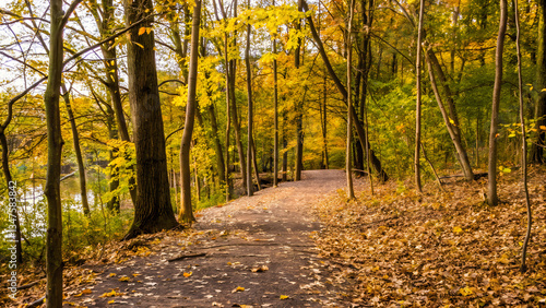 Obraz premium Beautiful autumn background with pathway through t