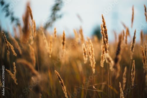 Obraz premium beautiful autumn field several spike close up