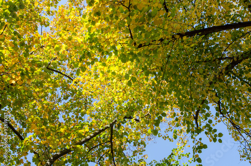 Fototapeta premium beautiful autumn foliage high in the trees on a clear sunny day