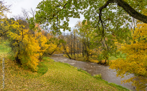 © photoexpert, Fototapeta premium Beautiful Autumn forest in raining day