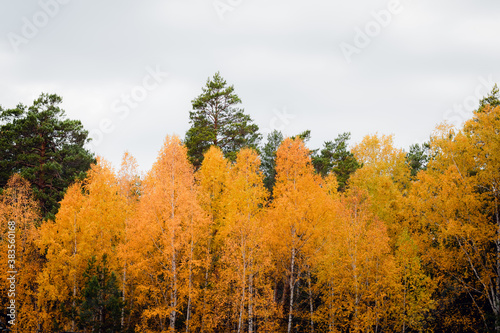 Fototapeta premium Beautiful autumn forest landscape in cloudy weather