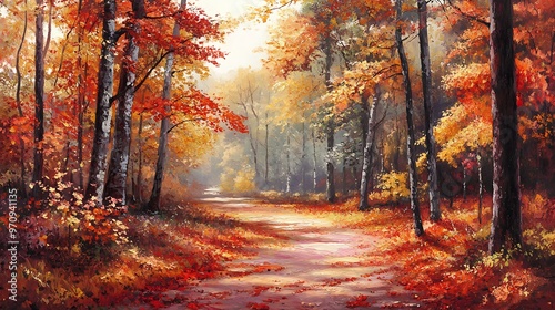 Obraz premium Beautiful Autumn Forest with Vibrant Colors and Soft Light