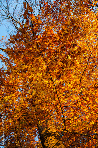 © Kozioł Kamila, Fototapeta premium Beautiful autumn landscape. Colorful leaves on the trees in autumn.