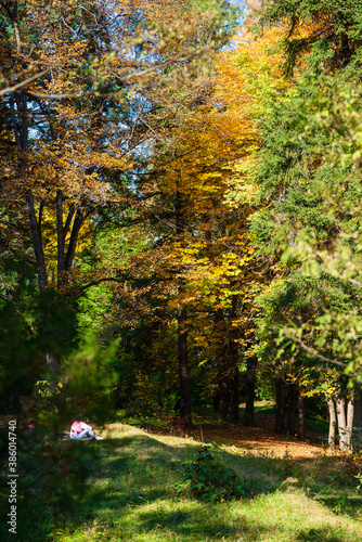 © vahanabrahamyan, Naklejka premium Beautiful autumn landscape in Vanadzor's botanical garden