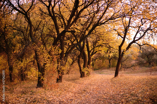 © Evgeniy Kalinovskiy, Fototapeta premium beautiful autumn landscape - Park with alleys , yellow dry leaves, leaves.