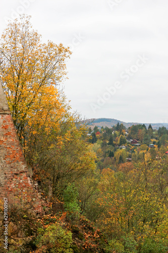 Fototapeta premium Beautiful autumn landscape with old castle wall