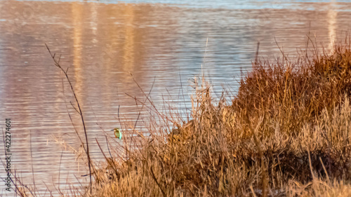 Fototapeta premium Beautiful autumn or indian summer view with a kingfisher near Mettenufer,...