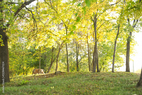 Fototapeta premium Beautiful autumn park with trees on sunny day