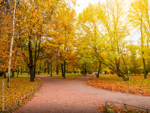 Fototapeta premium Beautiful autumn park with walk way,Autumn in St.petersburg