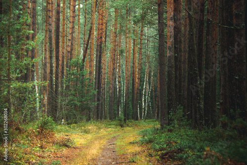 © Владимир Голубев, Obraz premium beautiful autumn pine forest, soft focus