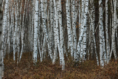 © pigwastudio, Fototapeta premium Beautiful autumn scene of birch forest