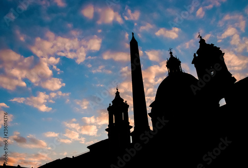 Fototapeta premium Beautiful autumn sunset over Piazza Navona baroque church in Rome