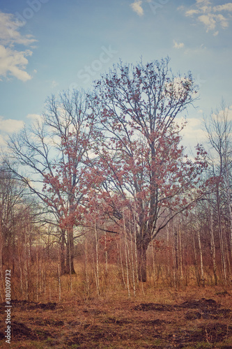 © Oleksii, Obraz premium Beautiful autumn trees in the forest. Bright autumn landscape.