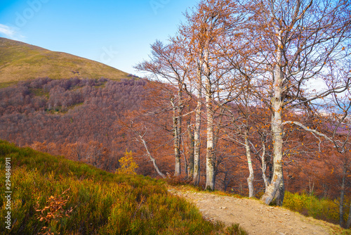 Fototapeta premium Beautiful autumnal forest. Beech trees with yellow leaves. Carpathian...