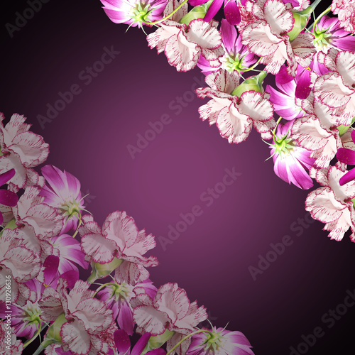 Fototapeta premium Beautiful background of flowers carnations and cosmos