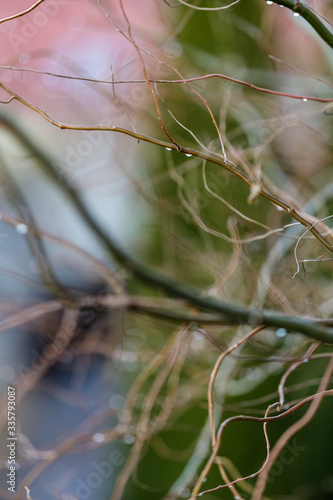 Fototapeta premium beautiful background or wallpaper of blurred thin branches with water drops,...
