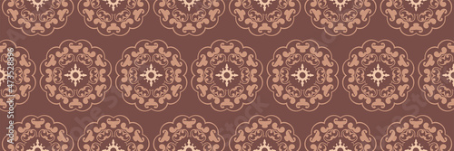 © PETR BABKIN, Fototapeta premium Beautiful background pattern with ornate decorative ornamentation on brown background. Seamless wallpaper texture. Vector image