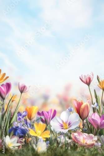 © Joyce, Fototapeta premium Beautiful background template made of Spring flowers.