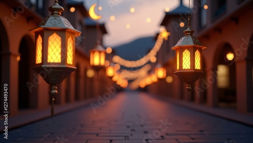 © Oman, Fototapeta premium Beautiful background with a shining lantern Fanus. Free space for your text