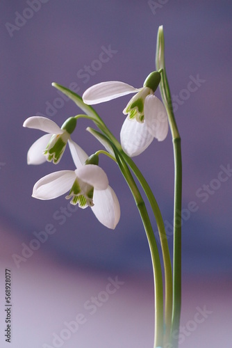 © ramona georgescu, Fototapeta premium Beautiful background with harbingers of spring ; Snowdrops, Galanthus