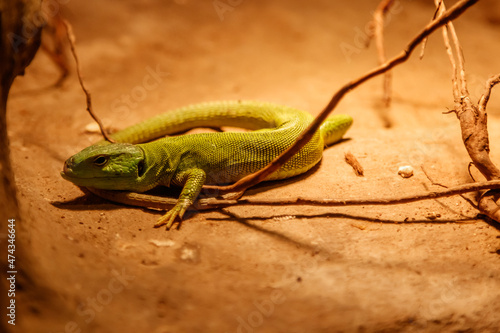 © Minakryn Ruslan , Fototapeta premium Beautiful Balkan Green Lizard - Lacerta trilineata