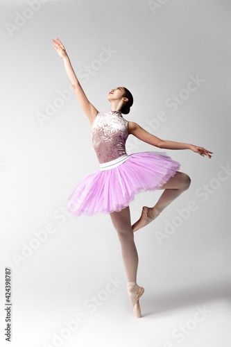 Naklejka premium Beautiful ballerina in pink tutu dancing