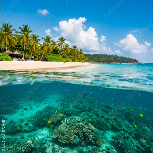 © Kathy , Fototapeta premium beautiful beach and beautiful ocean and fish swimming.