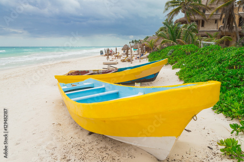 © Irina, Naklejka premium Beautiful beach. Storm sky over the sea Tulum, Mexico, Carribean