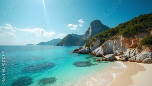 © Domaneantu, Obraz premium Beautiful beach with blue water