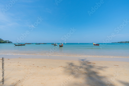 Obraz premium Beautiful beach with clear blue sky at phuket Thailand.