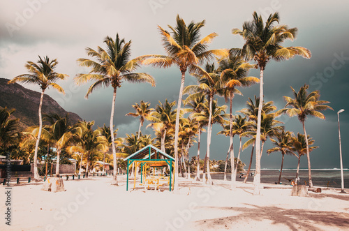 Fototapeta premium beautiful beach with palm trees in the Caribbean