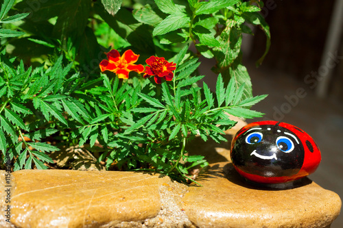 © kurgu128, Naklejka premium beautiful beetle sits on a rock in the colors